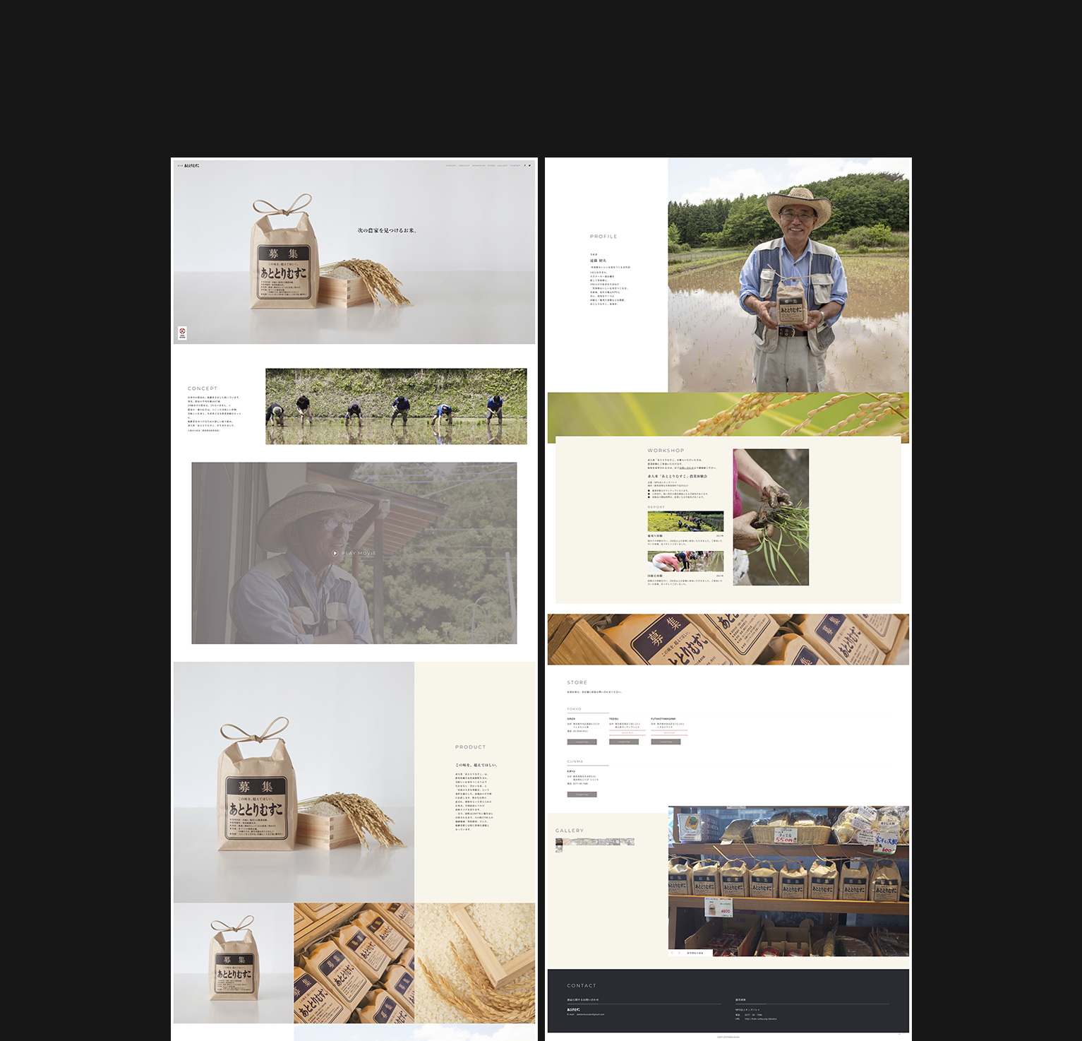 A farmer's best form of advertisement is providing delicious produce. Recruitment rice "Atotori Musuko" is a new initiative that sells delicious rice and agricultural experiences to find successors for these farms. We were in charge of creating a website to convey that project.