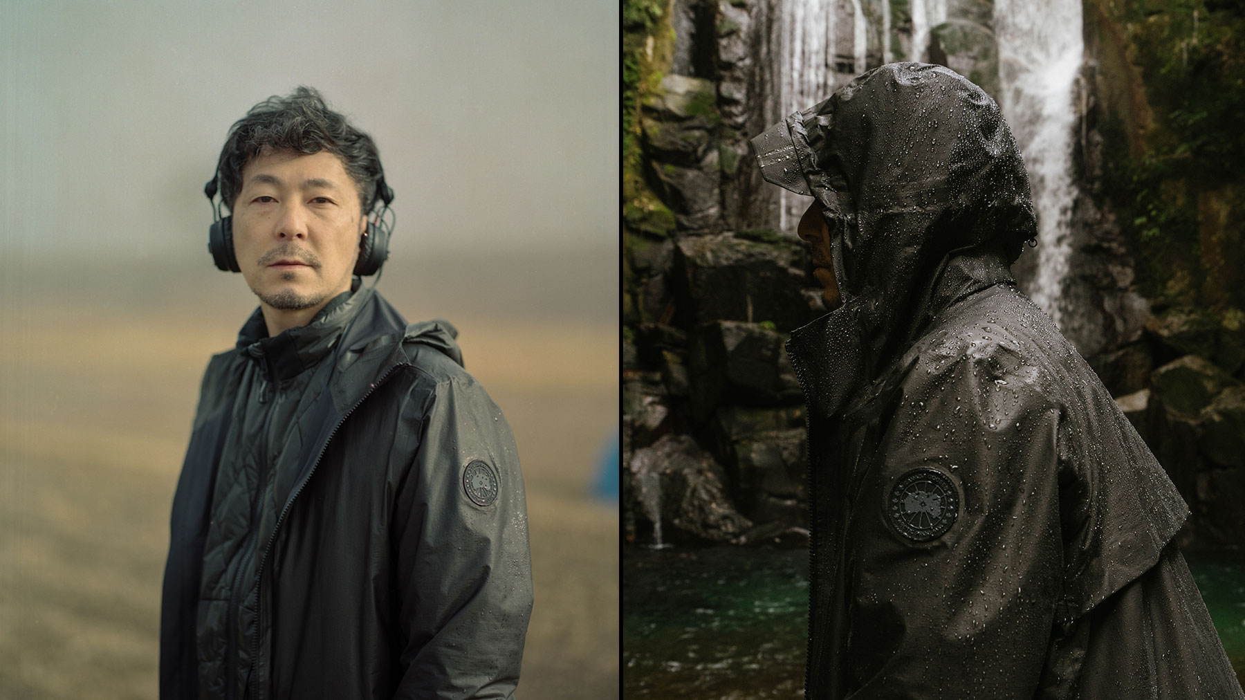 Okamoto makes art out of the sound of rain, creating a symphony of noise that harmonizes with nature. Born and raised in Japan, Okamoto says everything he does is 'shaped by the tradition of minimalism and simplicity.' The sound piece he created for this project was captured on location during the shoot in Wakayama, one of the rainiest corners of Japan.