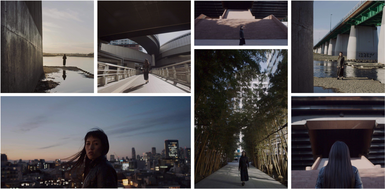 Meanwhile, calligraphy artist Aoi Yamaguchi traversed the dense urban jungle of Tokyo. Drawing inspiration from her surroundings she crafts her shodo performance, an act deeply rooted in nature and inspired by the seasons. Her performance scenes were shot in studio with an elaborate rain system custom fitted for the occasion.