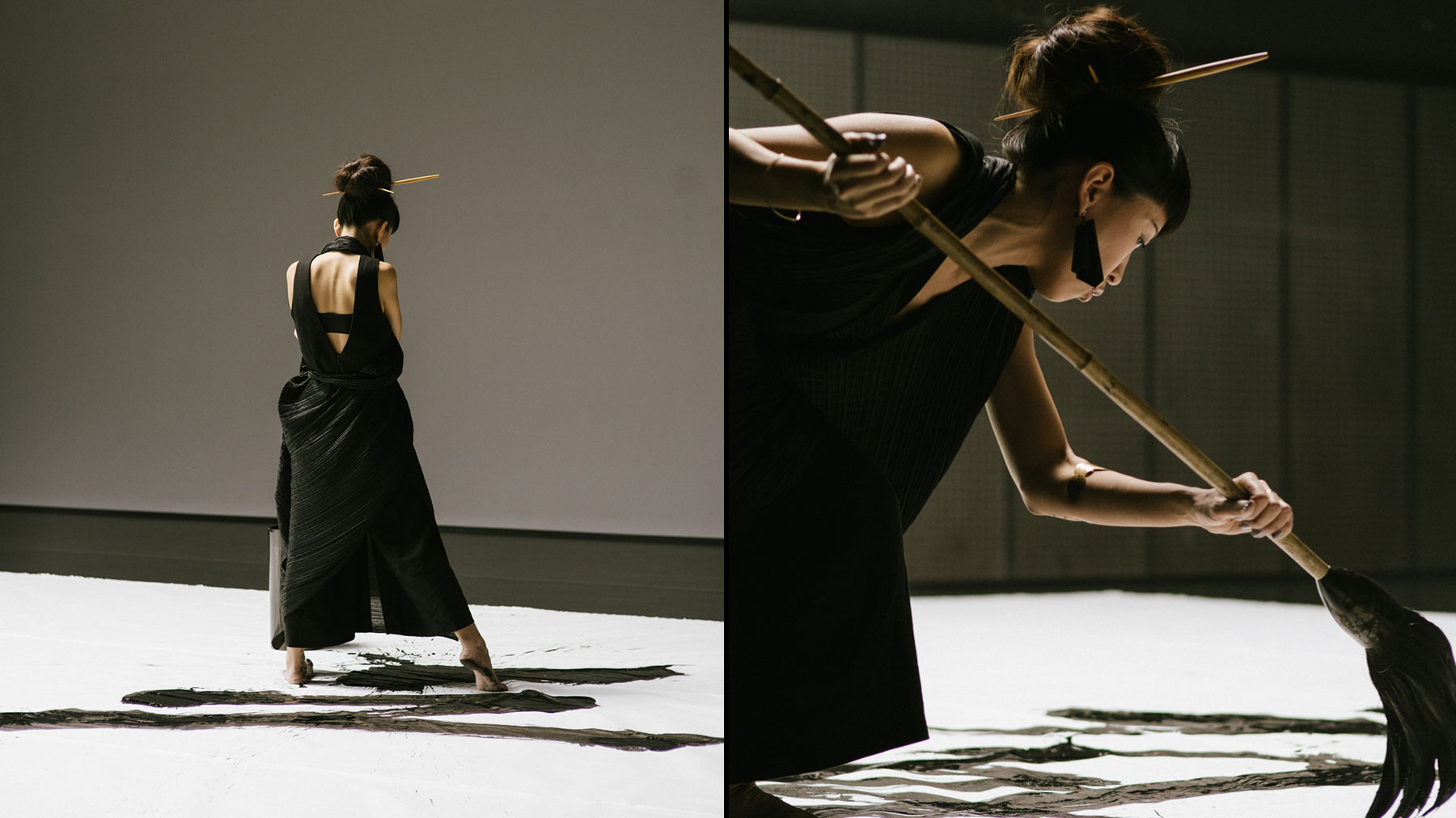 Aoi Yamaguchi began her calligraphy career at age 6, training under the watchful eye of master Zuiho Sato. Her works juxtapose traditional Eastern classical culture with contemporary artistic expressions. Through her performances, Yamaguchi transforms the two-dimensional art of Japanese calligraphy into an entirely full-body physical manifestation.