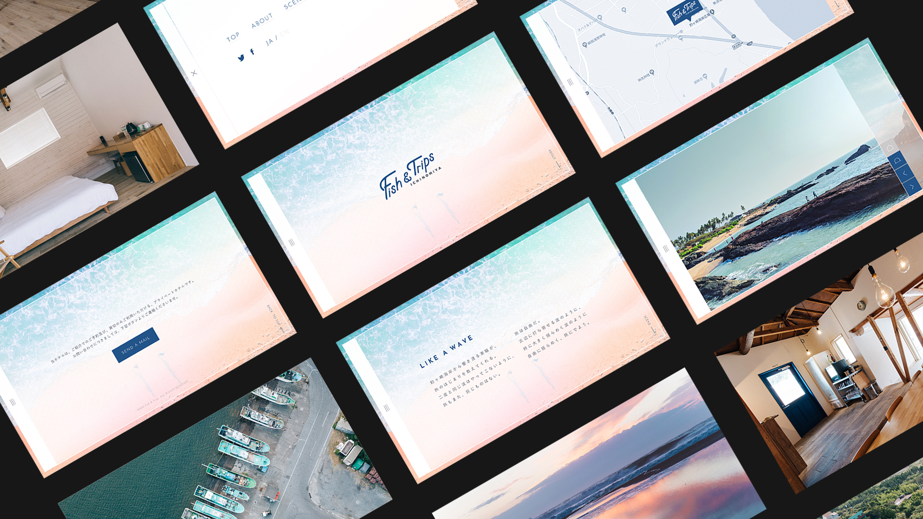 monopo is proud to present our recent work for the private resort hotel “Fish&Trips”, located on the shores of Tsurigasaki beach in Chiba prefecture. We designed and produced their logo, hotel exterior (partially) and web production.