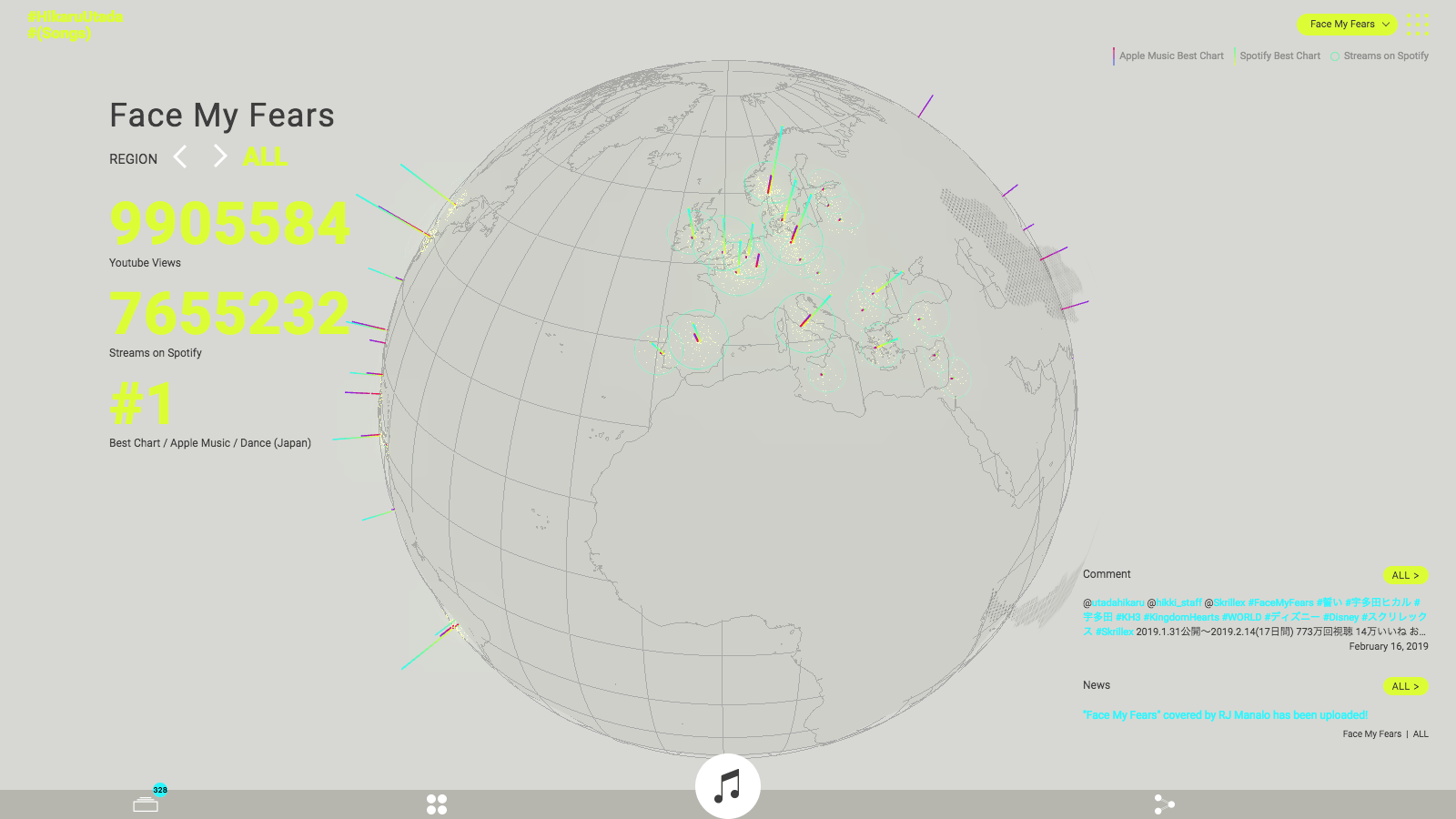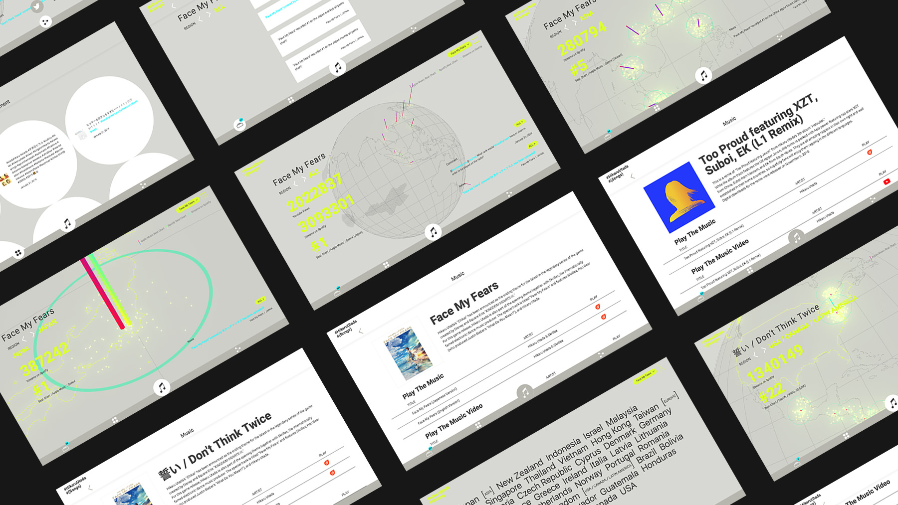 Utada Hikaru has become a part of a global buzz after releasing her new single for the first time in 11 years, ”Face My Fears” in January 2019. As a part of celebrating the release as well as the global ranking of the single, a special website was created where monopo had a role of developing and being in charge of the technical direction.