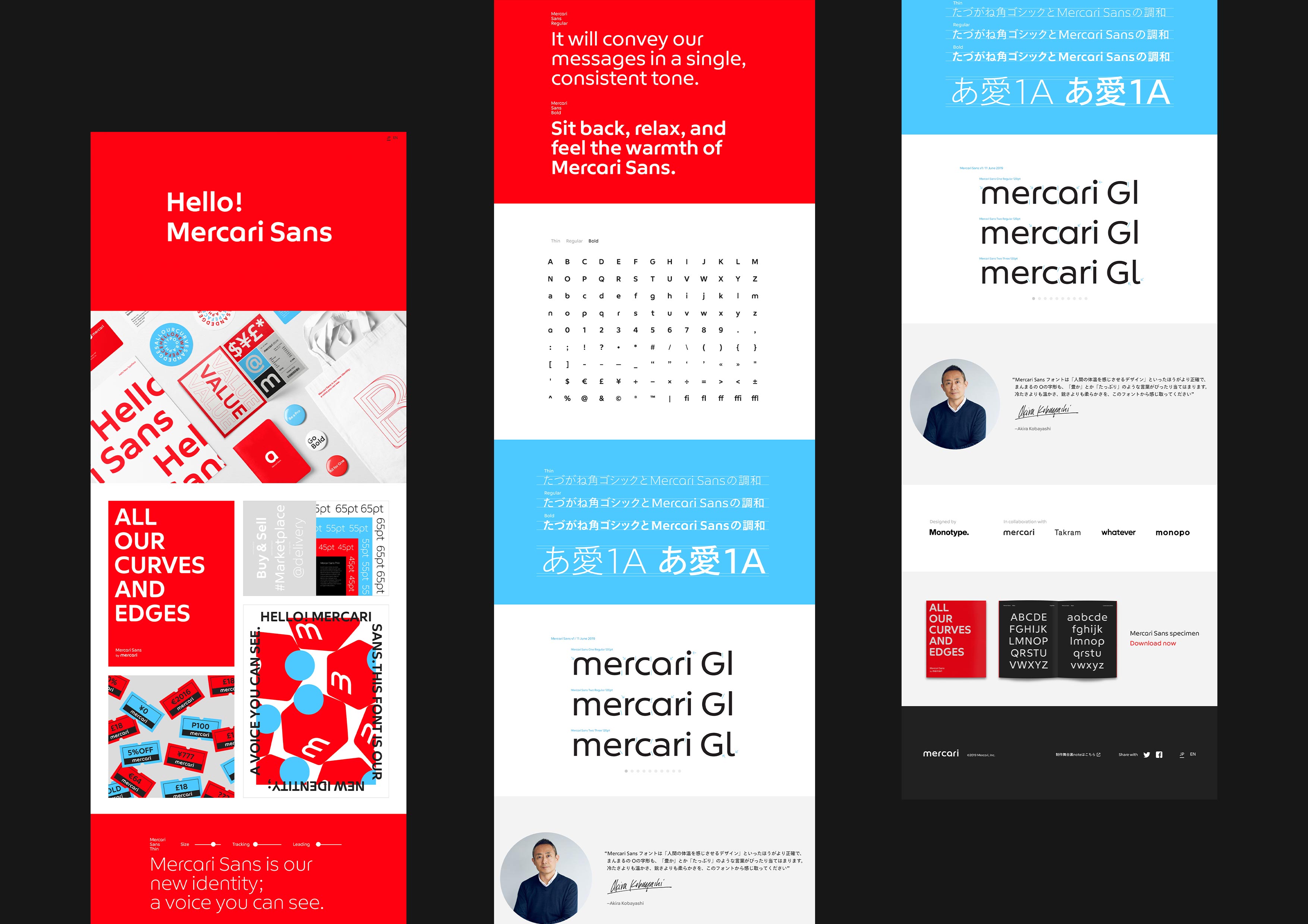 Mercari Sans was designed by legendary typeface design company Monotype. Together with them and the Mercari design team, we developed a website and made an animate video highlighting the font’s characteristics .
