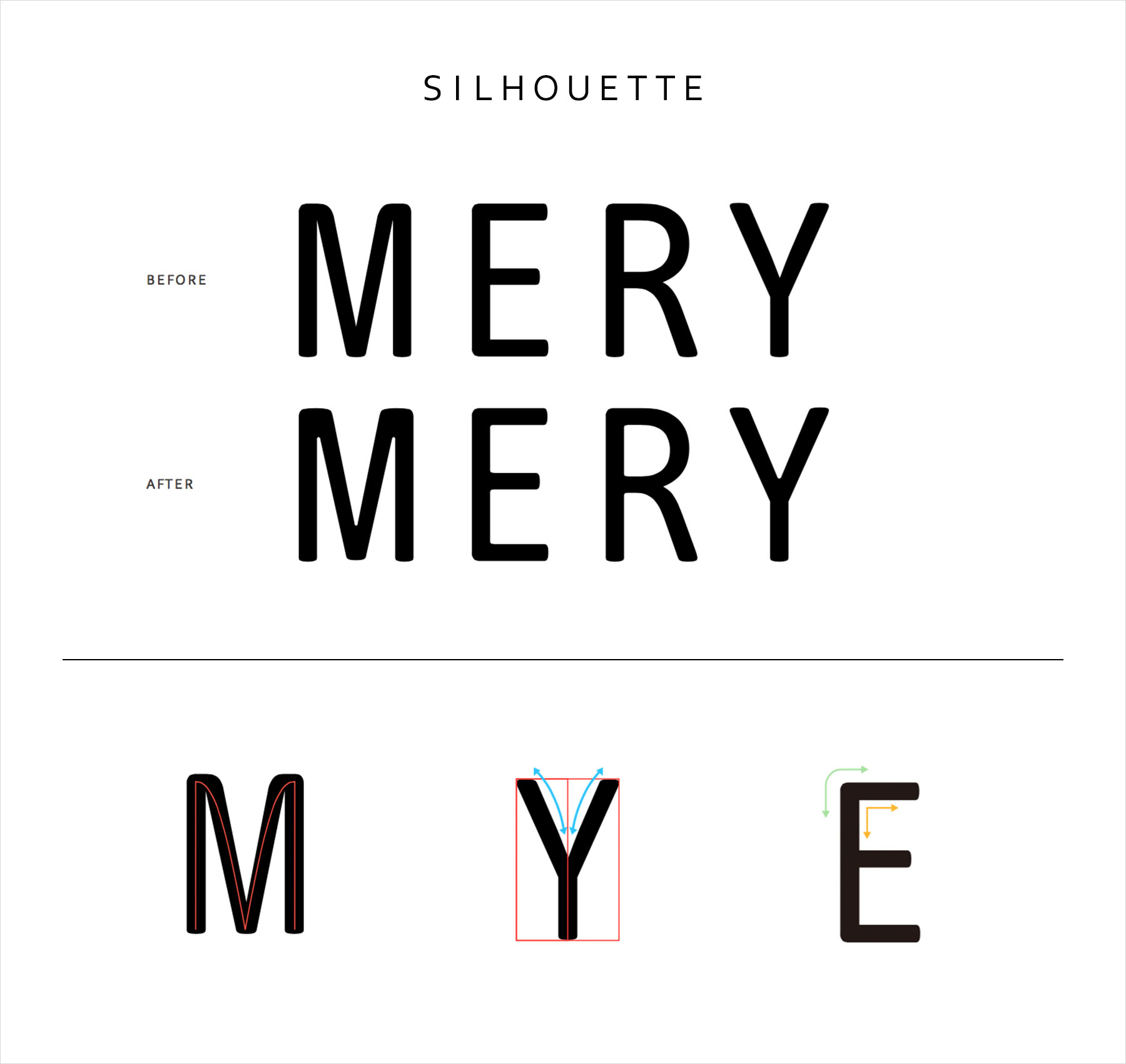 Previously, MERY had a typography-only logo, so in parallel to making a new logo, we readjusted their existing typographic logomark. In order to optimize its impact, we adjusted the silhouette and kerning. We made sure to harmonize the new symbol with the text as it is intended to be used in a wide-variety of media and sizes. The growth of the service was also taken into consideration.