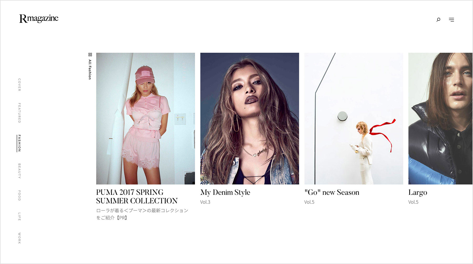 Rmagazine is a fashion and lifestyle magazine entirely directed by ROLA, one of Japan’s biggest celebrities. Rmagazine used to be a print magazine issued twice a year but with the demand for brand-collaborated content increasing, the decision was made to move the publication online. monopo was tasked with making the new digital version of Rmagazine.
