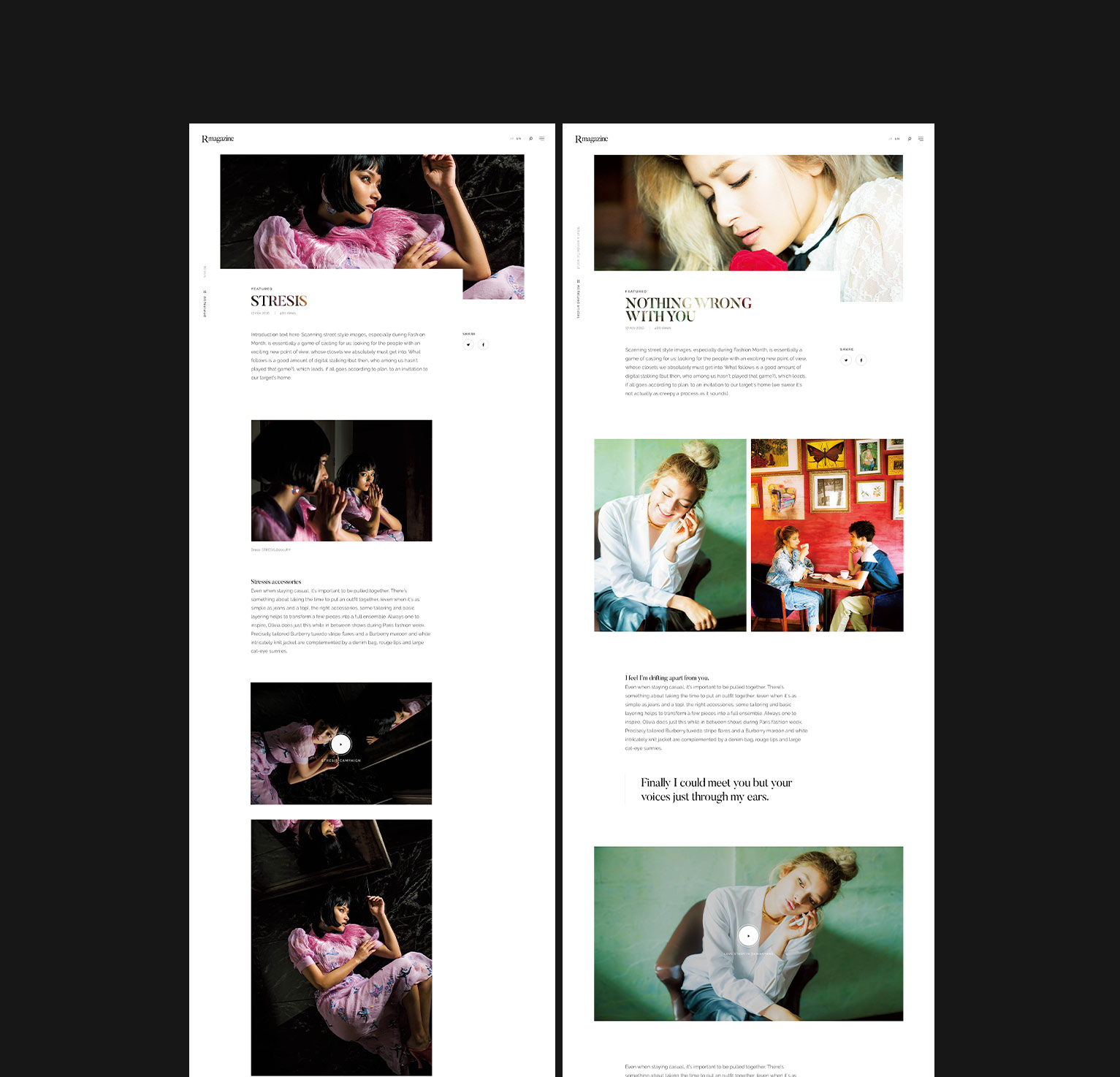 We wanted to give an editorial and fashion feel in the design and navigation. We got our inspiration directly from fashion magazines: giving a lot of space for visuals, playing with the layout and white spaces and having large typography as graphic elements. There are so many great print magazines, but not so many digital magazines as interesting as they often follow a standard interface. We wanted to challenge this by having an unconventional homepage that functions like an inspiring cover of a print magazine. Our homepage works in 2 ways: vertical scrolling and horizontal sliders.