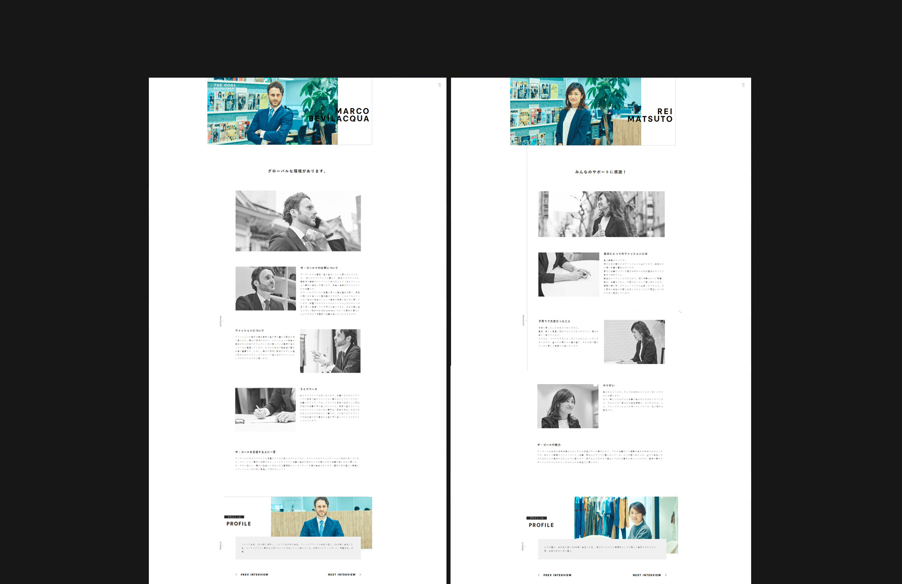 On the back of “THE GOAL” business cards, each member has a different version of the logo with its own line. We kept those variations of logos in the website as well and we restricted the amount of information within a screen in order to show clearly “What THE GOAL is like”. As you scroll, smooth animations show some elements and evoke the audience’s interest towards the next page. The filamentous motifs all over the website add dynamic movement and indicate “the attitude to achieve goals” while keeping it clear to find the information you need.