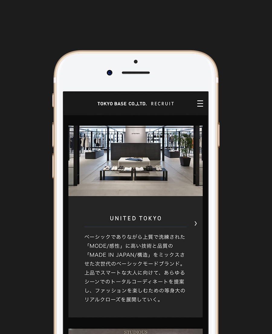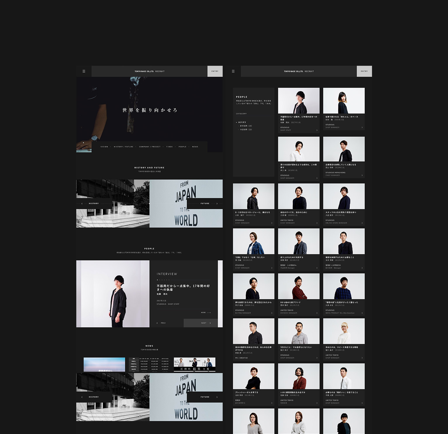 monopo produced the recruitment website for the fashion company TOKYO BASE.